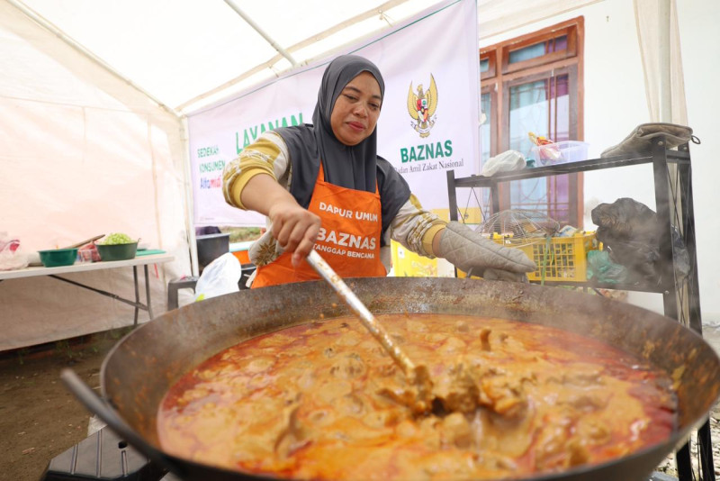 Badan Amil Zakat Nasional (BAZNAS) RI melalui BAZNAS Tanggap Bencana (BTB) terus mengoperasikan Dapur Umum di Kecamatan Palembayan, Kabupaten Agam, Sumatera Barat, untuk memastikan kebutuhan pangan para penyintas banjir dan tanah longsor terpenuhi setiap hari selama masa darurat.